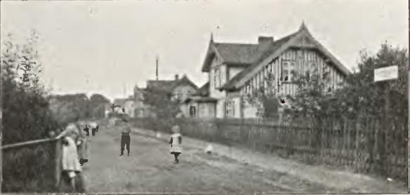 Dotrzemy najpierw do ulicy Tamka, do uroczej naszym zdaniem, willowej kolonii na skraju lasu, pośrodku której leży lipowy dwór – stara rezydencja w otoczeniu wspaniałych drzew. Są tu usytuowane większe i małe mieszkania, a dwóm najstarszym, sąsiednim willom – drogi Schulsteg i Seebadstraße (ulica Pawia), które łączą ulice Tamka i Środkową (Mittelstraße), przeciwstawiają niejeden nowy budynek. W Tylnej Wsi, do której docieramy ulicą Nowotną (Seestraße), cieszą swoim widokiem małe, przytulne i często do połowy schowane za ciernistymi żywopłotami drewniane domki, w których letnicy znajdują przyjemną i zadowalającą obsługę.