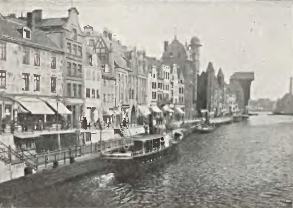 „Spółka Akcyjna Gdańskiej Żeglugi Parowej i Kapieli Morskiej Wisła" obsługuje ruch handlowy między gdańską Bramą Straganiarską a Stogami, jak też żeglugę pasażerską między gdańską Zieloną Bramą a Stogami. Ta ostatnia, po pięknym sezonie jednorocznym, rozwinęła się ogromnie. Od Zielonych Świąt co kwadrans żeglują parowce i łodzie motorowe, częstokroć przewożą one podczas jednego dnia wiele tysięcy wycieczkowiczów do pięknych Stogów. Już podróż, która w założeniu trwa 25 minut, jest warta zachodu. Podczas niej w krótkim czasie roztaczają się przed nami interesujące widoki. Sprzed Zielonej Bramy parowiec lub łódź motorowa zabiera nas w rejs po Motławie wzdłuż Długiego Pobrzeża. Poprzez zabytkowe bramy zaglądamy w głąb nastrojowych uliczek.